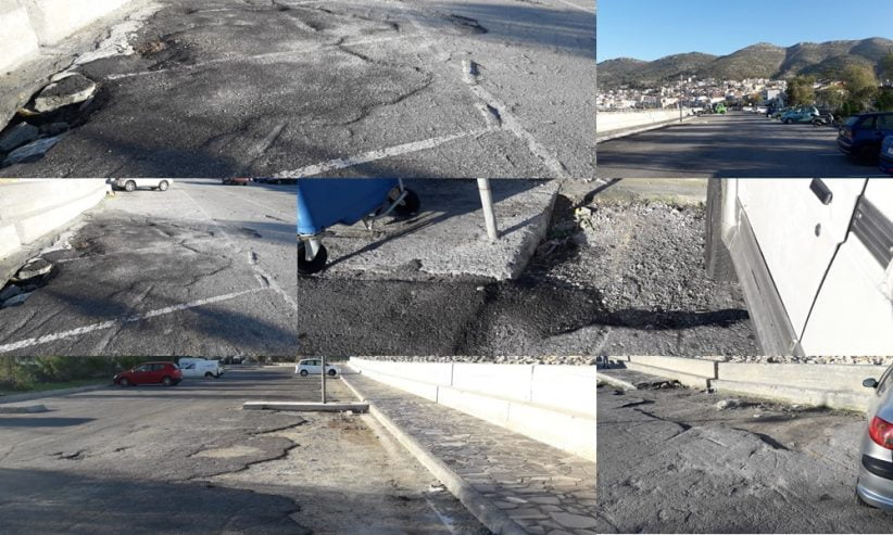 Ο υπαίθριος χώρος στάθμευσης παρουσιάζει προβλήματα με σκασίματα, ρωγμές και λακκούβες στο οδόστρωμα.