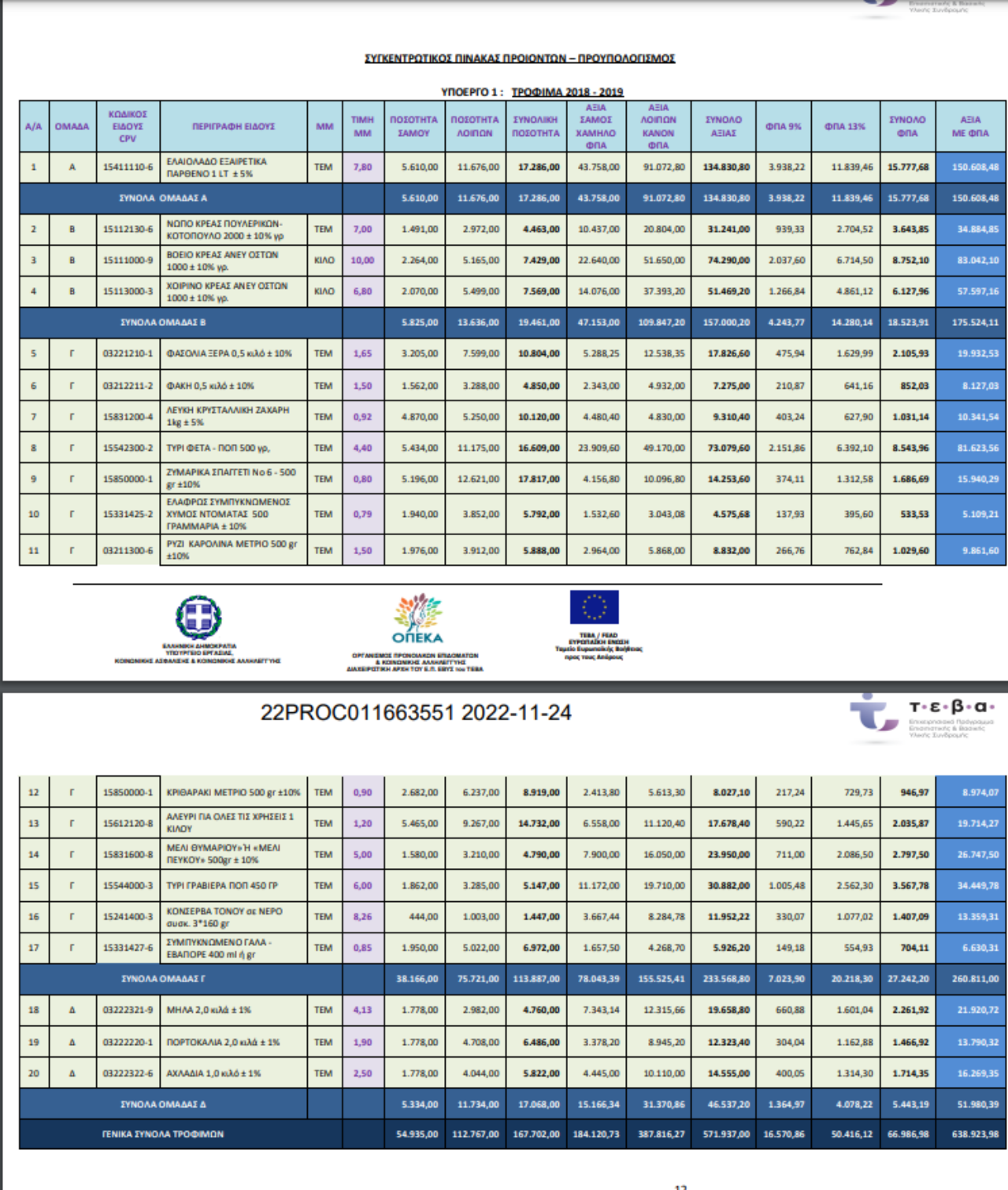 Στo πλαίσιo του Επιχειρησιακού Προγράμματος Επισιτιστικής και Βασικής Υλικής Συνδρομής, το οποίο χρηματοδοτείται από το Ταμείο Ευρωπαϊκής Βοήθειας για τους Απόρους ( ΤΕΒΑ ) η Οικονομική Επιτροπή της Περιφέρειας Βορείου Αιγαίου ενέκρινε την περασμένη Παρασκευή 17 Μαρτίου τον ανάδοχο προμήθειας ειδών τροφίμων και ειδών βασικής υλικής της Κοινωνικής Σύμπραξης της ΠΒΑ (Π.Ε. Λήμνου, Σάμου & Ικαρίας), συνολικού προϋπολογισμού 722.393,41 € συμπεριλαμβανομένου ΦΠΑ (προϋπολογισμός χωρίς ΦΠΑ 9%, 13%,17%, 24% : 640.777,56 €).