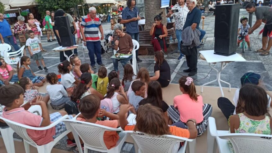Την Δευτέρα ξεκίνησαν και οι παράλληλες εκδηλώσεις της έκθεσης στην Πλατεία Πυθαγόρα με τα παιδιά να ζωγραφίζουν για την Ειρήνη εμπνεόμενα από το παραμύθι που διάβασε στα παιδιά η συγγραφέας του Έρη Ρίτσου. Η πλατεία γέμισε από τις χαρούμενες φωνές και τα έργα των παιδιών που εκτέθηκαν την ίδια στιγμή της δημιουργίας τους και παρέμειναν εκεί έως αργά το βράδυ κινώντας το ενδιαφέρον όσων περνούσαν από την πλατεία.