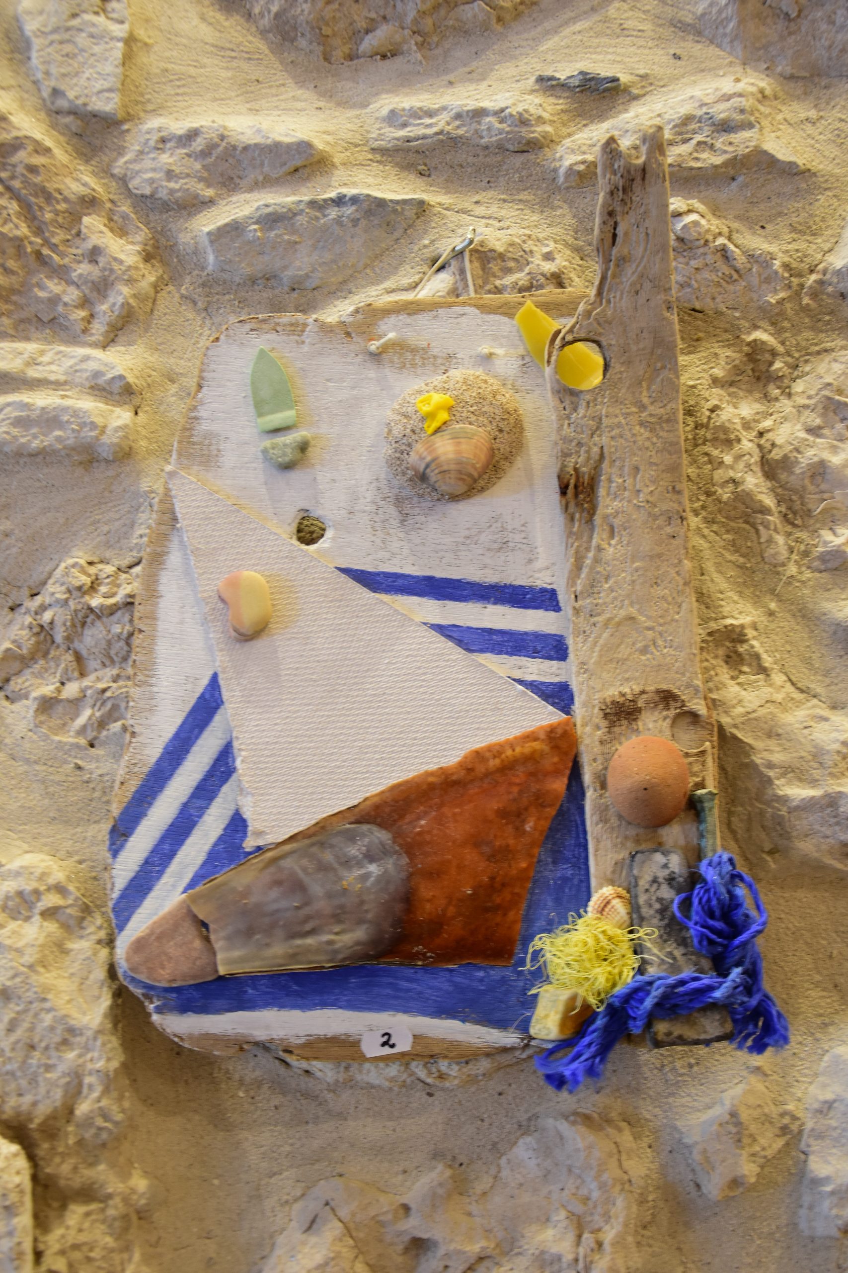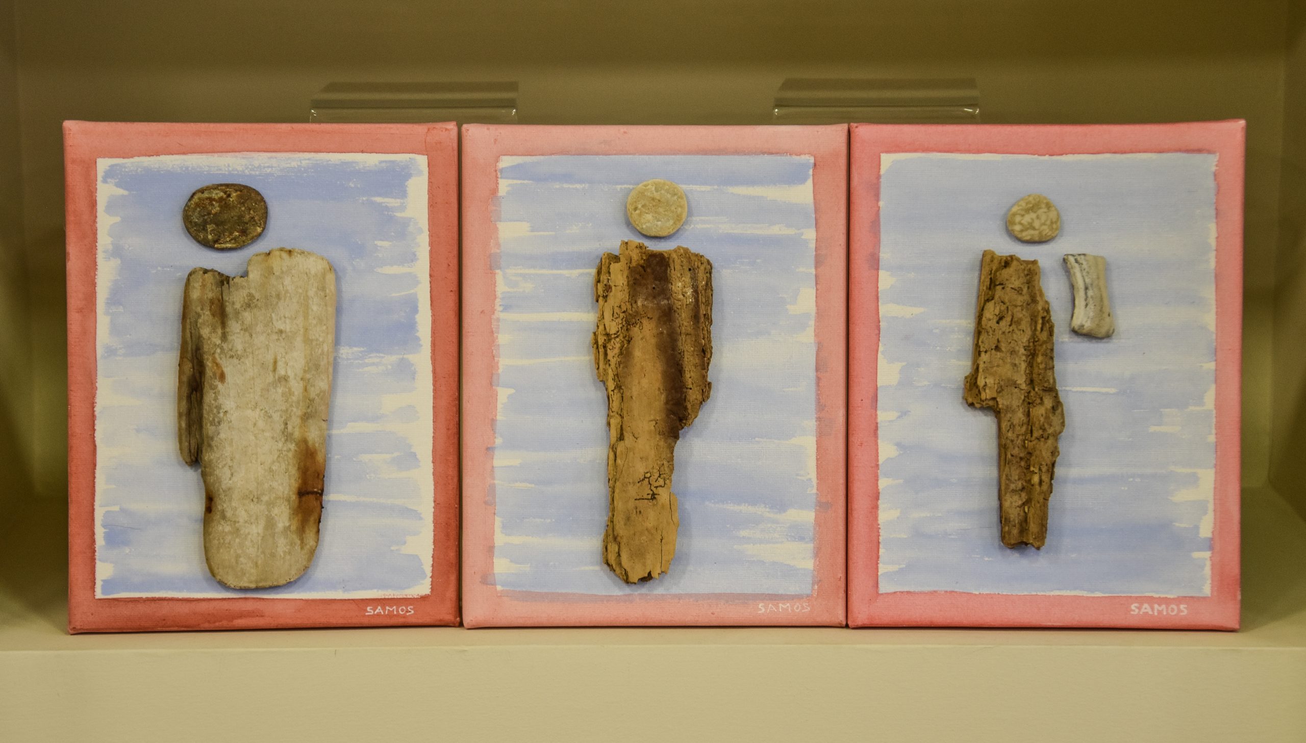 Ζωγραφική με κολάζ εμπνευσμένα από ευρήματα στις παραλίες αλλά και σε εργοτάξια στην Σάμο.