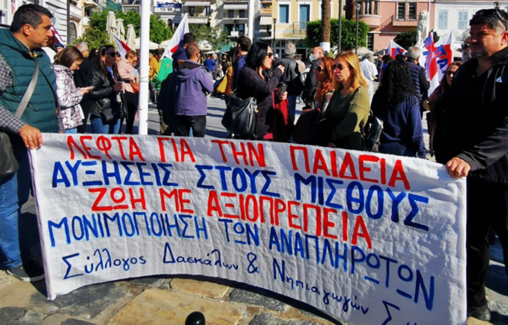 “Και φέτος συνεχίζουμε τον αγώνα μας για την υπεράσπιση του παιδαγωγικού μας ρόλου, την αξιοπρεπή δουλειά, τη μόρφωση των μαθητών!”.