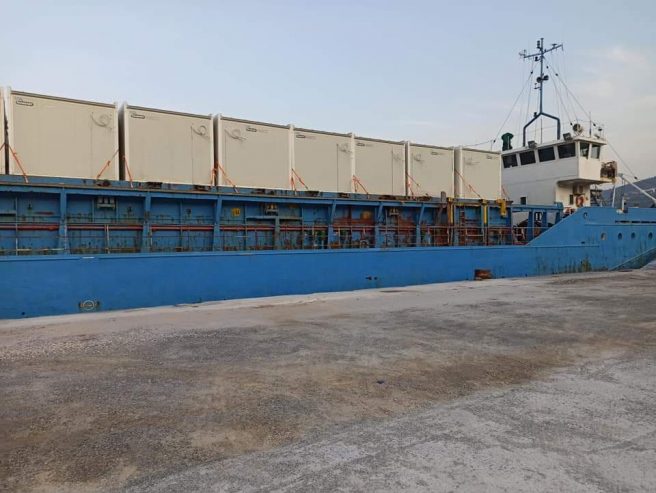 Το πλοίο μεταφοράς μεγάλων φορτίων, έφτασε στο λιμάνι της Σάμου στις 16.30 μ.μ, μεταφέροντας περίπου 45 εξοπλισμένους οικίσκους, τύπου container, για τη φιλοξενία μεταναστών .