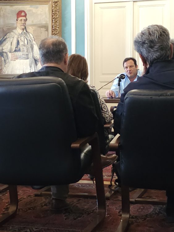 Μετά την ολοκλήρωση του απολογισμού του έργου του Δήμου Ανατολικής Σάμου κατά το πρώτο τετράμηνο της θητείας του, ο Δήμαρχος δέχθηκε τις ερωτήσεις των δημοσιογράφων.