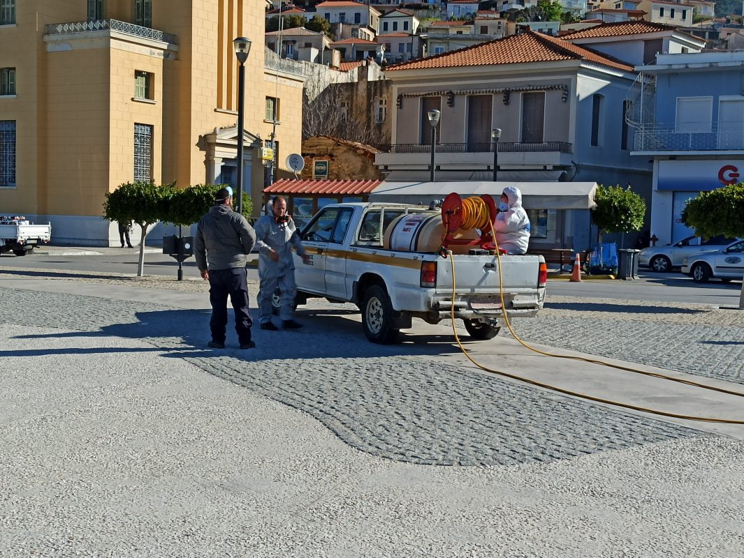 Ξεκίνησαν σήμερα, από νωρίς το πρωί, οι απολυμάνσεις στους κοινόχρηστους χώρους στην πρωτεύουσα του νησιού.