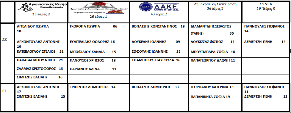 Εκλέγονται από την ΔΑΚΕ: Σοφούλης Ιωάννης Βογιατζής Κωνσταντίνος.