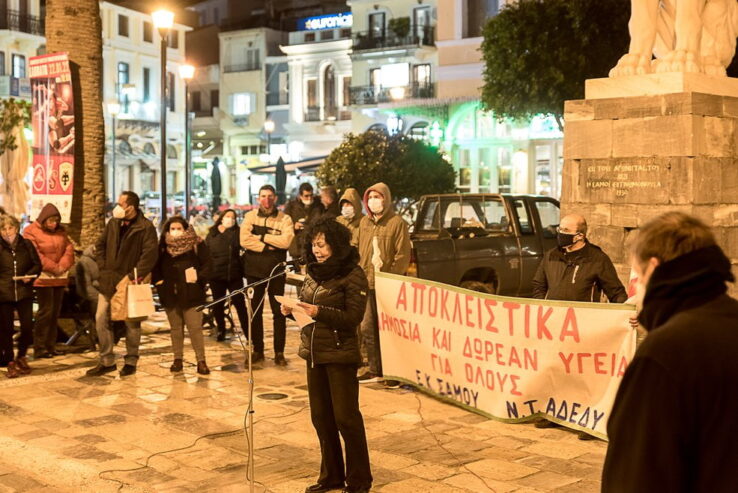 Το Εργατικό Κέντρο Σάμου, το ΝΤ Σάμου της ΑΔΕΔΥ, σωματεία και φορείς διοργάνωσαν κινητοποίηση την περασμένη Πέμπτη 20/1 στην πλατεία Πυθαγόρα, στο Βαθύ διεκδικώντας μαζικές προσλήψεις υγειονομικών, επίταξη των ιδιωτικών κλινικών, κρατική χρηματοδότηση και ουσιαστική ενίσχυση του δημόσιου συστήματος υγείας και έθεσαν σαν επιτακτική ανάγκη την οργάνωση της κοινής τους δράσης.
