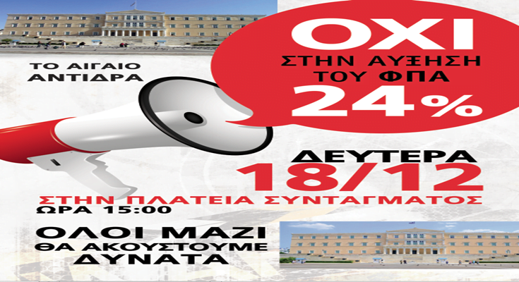 Συγκέντρωση διαμαρτυρίας στο Σύνταγμα για τη διατήρηση του μειωμένου Φ.Π.Α.