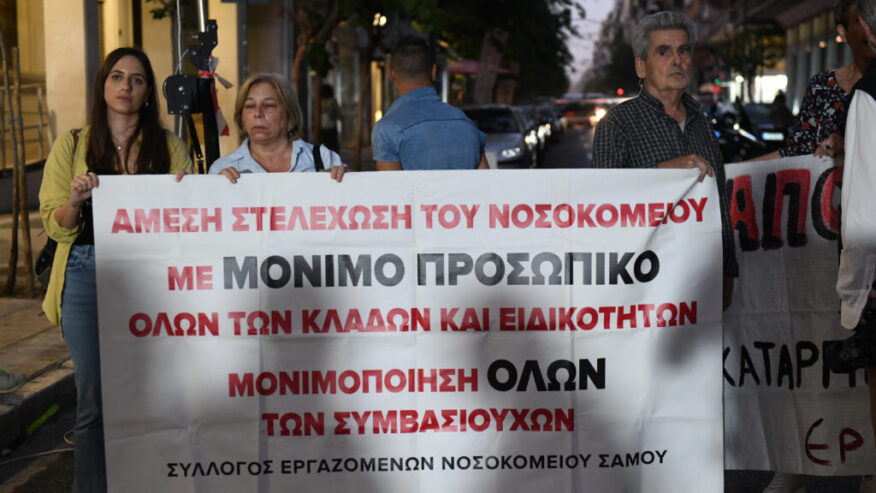 Απαιτούν μαζικές προσλήψεις μόνιμου προσωπικού, μονιμοποίηση των συμβασιούχων, ίδρυση ΜΕΘ και ΜΑΦ στα νησιά.