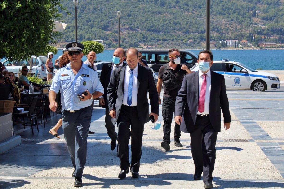 Νωρίτερα είχε σειρά συναντήσεων με τον αντιπεριφερειάρχη του νησιού, Βασίλειο Πανουράκη, το δήμαρχο Ανατολικής Σάμου, Γεώργιο Στάντζο, το μητροπολίτη Σάμου, Iκαρίας και Κορσεών , Ευσέβιο, και τον Κεντρικό Λιμενάρχη Σάμου, αντιπλοίαρχο Δημήτρη Τσινιά.