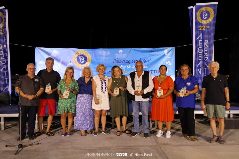 Ακολούθησε η απονομή των αναμνηστικών πλακετών, ενώ ξεχώρισε και η βράβευση του Ναυτικού Ομίλου Καρδαμύλων στον Γ.Γ. Μανώλη Κουτουλάκη και στην Πρόεδρο Εριφύλη Βαρδάκη, για τη διοργάνωση της «Ρεγκάτας του Αιγαίου». Παράλληλα έγιναν και οι απονομές στους νικητές των τελευταίων ιστιοδρομιών, δύο για την κατηγορία ORC Performance και μία για την ORC Sport .