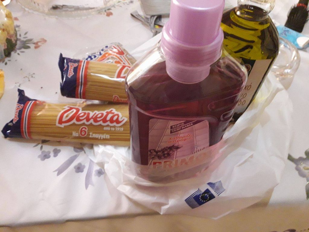 Συνεχίστηκε και σήμερα η διανομή των τροφίμων για τους δικαιούχους του ΚΕΑ μετά την υπαγωγή τους στο ΤΕΒΑ ( Ταμείο Ευρωπαϊκής Βοήθειας προς τους Απόρους).Δικαιούχος του προγράμματος (1 άτομο ) έστειλε σήμερα στο samos24.gr φωτογραφίες με τα τρόφιμα του προγράμματος για τον μήνα  Αύγουστο.Ο δικαιούχος  που είχε επιλέξει  Κοινωνικό Εταίρο και το Σημείο Διανομής  το κτήριο της Αντιπεριφέρειας Σάμου, παρέλαβε μια σακούλα με: