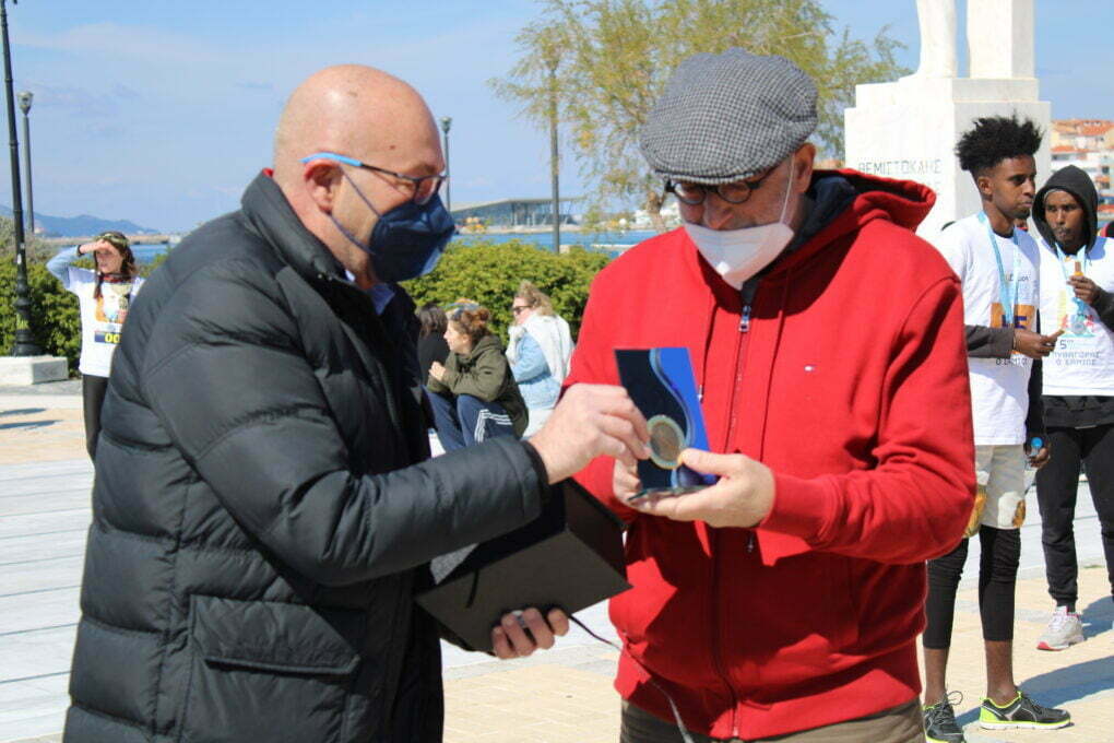 Ο κ. Βαλαγεωργίου παρέλαβε την τιμητική πλακέτα από τον δήμαρχο εμφανώς συγκινημένος, ενώ το πλήθος στην Πλατεία Θεμιστοκλή Σοφούλη δεν σταμάτησε να τον χειροκρότει .