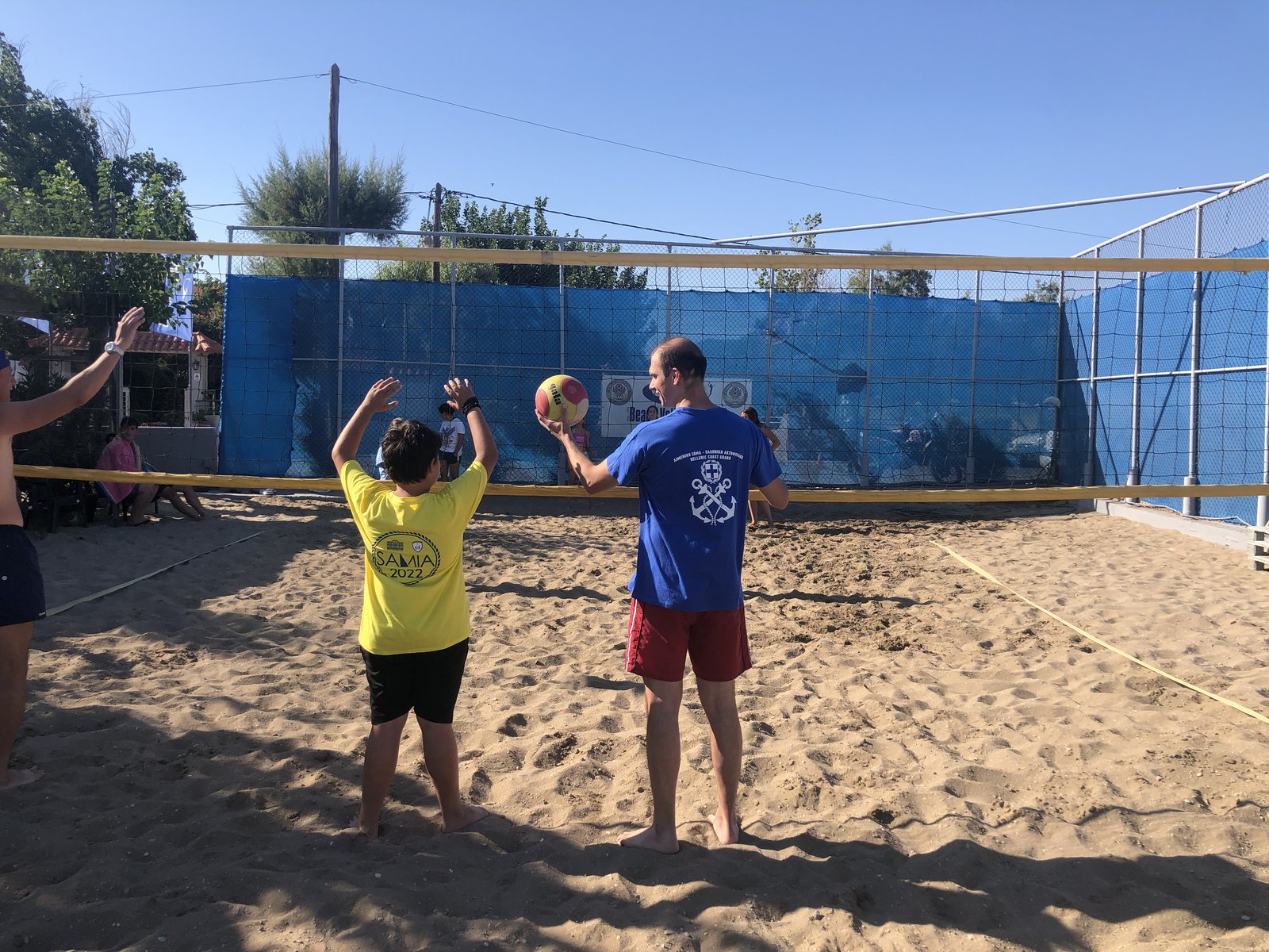 – Πετοσφαίριση στην άμμο με τον αθλητή του Μίλωνα Α1 εθνικής κατηγορίας Δόκιμο Λ/Φ Τσαρκάτογλου Μιλτιάδη και
