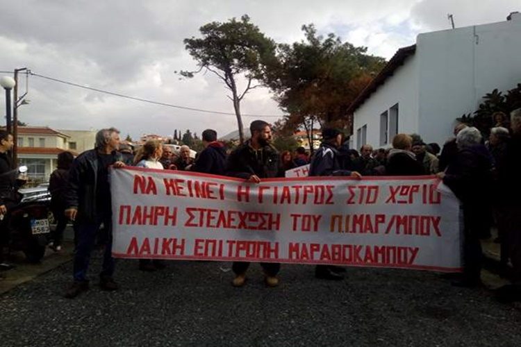 Με μαζική κινητοποίηση του λαού του Μαραθοκάμπου έγινε σήμερα κινητοποίηση της Λαϊκής Επιτροπής. Με δεκάδες αυτοκίνητα οι Μαραθοκαμπίτες ξεκίνησαν με αυτοκινητοπορεία από το χωριό προς το Καρλόβασι και το Κέντρο Υγείας στο οποίο υπάγεται το Περιφερειακό Ιατρείο Μαραθοκάμπου. Συγκεντρώθηκαν στο Κέντρο Υγείας όπου μετέφεραν το ομόφωνο ψήφισμα της πάνδημης συγκέντρωσης της Λαικής Επιτροπής με το οποίο απαιτούν: