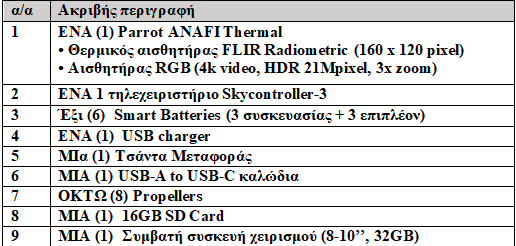 Στον παρακάτω πίνακα υπάρχει ακριβής περιγραφή των παραδοτέων υλικών.
