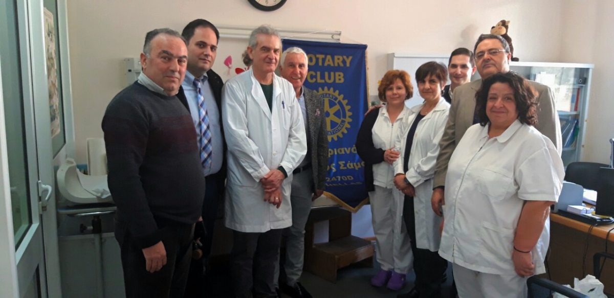 Στα πλαίσια του Ανθρωπιστικού του Έργου, ο Ροταριανός Όμιλος Σάμος την Τετάρτη 06/02/2019 πραγματοποίησε Δωρεά τριών Ιατρικών Διαγνωστικών Μηχανημάτων προς την Παιδιατρική Κλινική του Γενικού Νοσοκομείου Σάμου για την άμεση κάλυψη σχετικών λειτουργικών αναγκών.