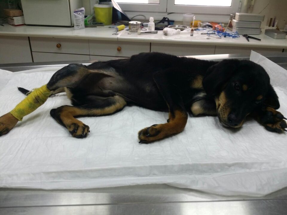 November 2019 still a puppy, I was hit by a car outside of Karlovassi and was left there abandoned. Someone passing saw me and called for help. Spyro came and took me to his home to care for me. He took me to the veterinarian which realized I would need surgery on my leg which cost around 350 euros. It took a while to gather the money for the surgery and for someone to take me to Chios… and thus by the time I got to surgery my leg could not be fully fixed and I was left with a bit of a crooked back leg (just between us my leg doesn’t bother me at all not to play or to run). After a few days in the clinic in Chios, and after several injectable antibiotics and painkillers, for the fracture and multiple wounds I became completely well! I have now grown up in Spyros wonderful shelter and I am waiting for “my” person !! I am sterilized, fully vaccinated and only 14 kilos.