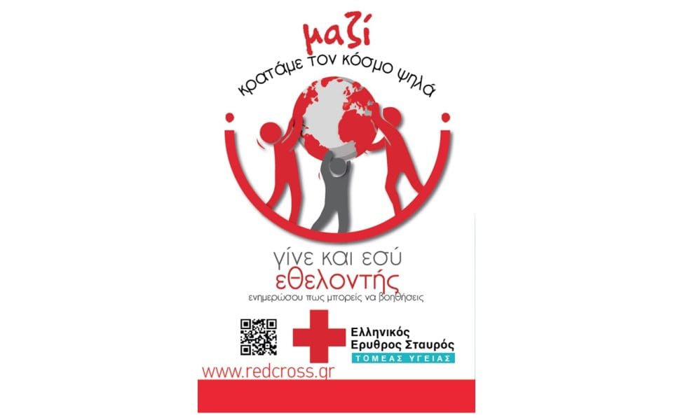 Γίνε εθελοντής του τομέα Υγείας του Ελληνικού Ερυθρού Σταυρού, με ενεργή συμμετοχή στις δράσεις, όπου υπάρχει ανάγκη, ΜΑΖΙ ΚΡΑΤΑΜΕ ΤΟΝ ΚΟΣΜΟ ΨΗΛΑ.