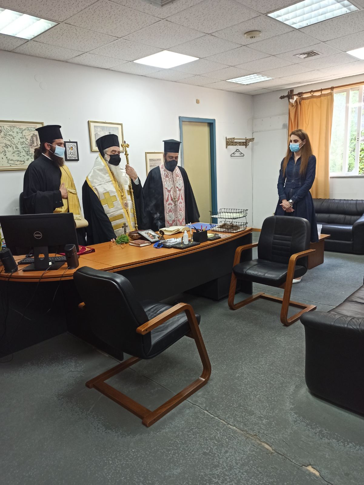 Επίσης η κ. Αγγελή ζήτησε την τέλεση Αγιασμού στο γραφείο της, ο οποίος και ετελέσθη από του Ποιμενάρχου μας με κατάνυξη, παρουσία του επιστημονικού και νοσηλευτικού προσωπικού του Νοσοκομείου. Ο Σεβασμιώτατος της προσέφερε ως ευλογία την Εικόνα της Παναγίας μας.