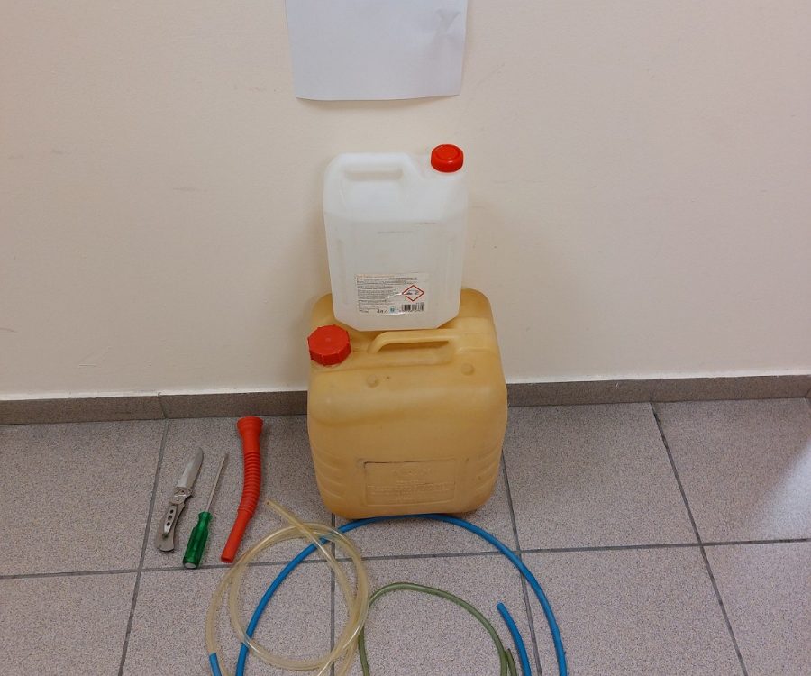 Κατασχέθηκαν μεταξύ άλλων, Ι.Χ. επιβατικό αυτοκίνητο, σουγιάς, κατσαβίδι και (2) πλαστικά μπιτόνια