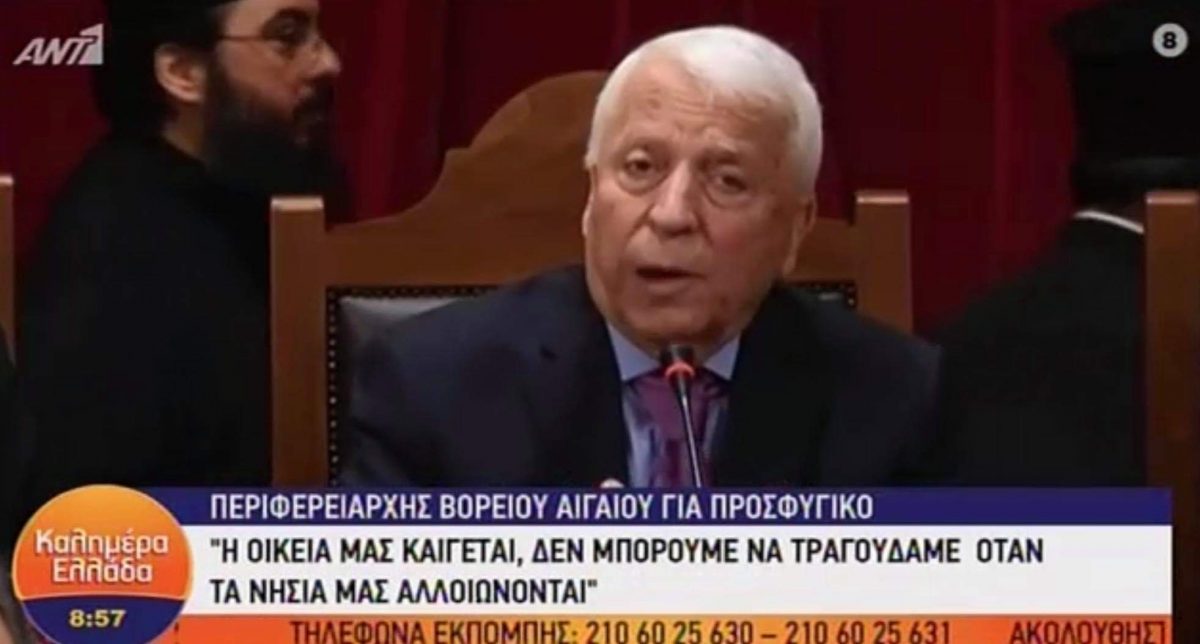 «Αυτή τη στιγμή έχει καταλυθεί το κράτος στο Βόρειο Αιγαίο, δεν υπάρχει πολιτεία! Μάλλον η Κυβέρνηση ή έχει αποφασίσει να μας εκχωρήσει σε μια άλλη χώρα κάτι που δεν το δεχόμαστε καθώς εδώ θα υπάρχει πάντα Ελληνική σημαία ή ίσως έχει αποφασιστεί να γίνει το Βόρειο Αιγαίο μια Περιφέρεια προσφύγων. Αυτό πρέπει να ξυπνήσει τις συνειδήσεις των υπόλοιπων Ελλήνων, δεν πρέπει να επιτρέψουν το Βόρειο Αιγαίο του πολιτισμού, των βραβείων Nobel, της ναοδομίας και των νεομαρτύρων να γίνει «γκέτο». Η διαφημιζόμενη αποσυμφόρηση μάλλον σημαίνει συμφόρηση για το Βόρειο Αιγαίο. Ουδείς Υπουργός έρχεται στο Βόρειο Αιγαίο.., έπρεπε όλοι να έρχονται εδώ και να εκφωνούν σχέδια ανάπτυξης των νησιών.., ουδείς έρχεται όμως! Έχει εγκαταλειφθεί η κατάσταση, τα σχέδια που εξαγγέλει η Κυβέρνηση συνεχώς αλλάζουν, οι υπεύθυνοι για το μεταναστευτικό και αυτοί αλλάζουν κάθε δύο εβδομάδες. Οι Υπουργοί σήμερα να φύγουν από τα “ωραία” γραφεία τους και να έρθουν να δουν τι συμβαίνει! Εδώ χάνεται η Ελλάδα! Καταλύεται το Κράτος!».