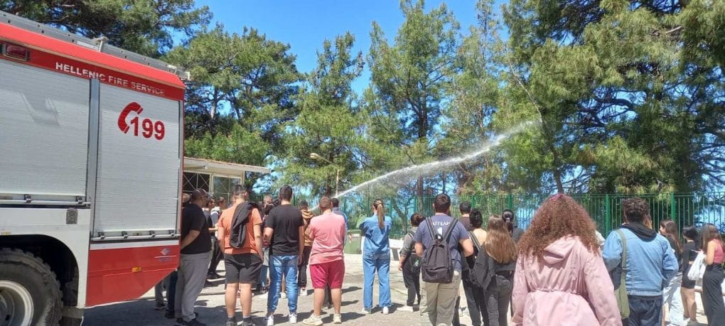 Η παρουσίαση ολοκληρώθηκε με μια εντυπωσιακή επίδειξη από το υδροφόρο όχημα της Πυροσβεστικής, το οποίο πραγματοποίησε ρίψη νερού. Αυτή η ενεργητική δράση έδωσε στους μαθητές και τους εκπαιδευτικούς μια βιωματική εμπειρία για τον τρόπο που χρησιμοποιείται η ρίψη νερού στην κατάσβεση πυρκαγιών και παρείχε μια εικόνα της εξειδικευμένης τεχνολογίας και των μέσων που διαθέτει η Πυροσβεστική για τη διαχείριση έκτακτων περιστάσεων.