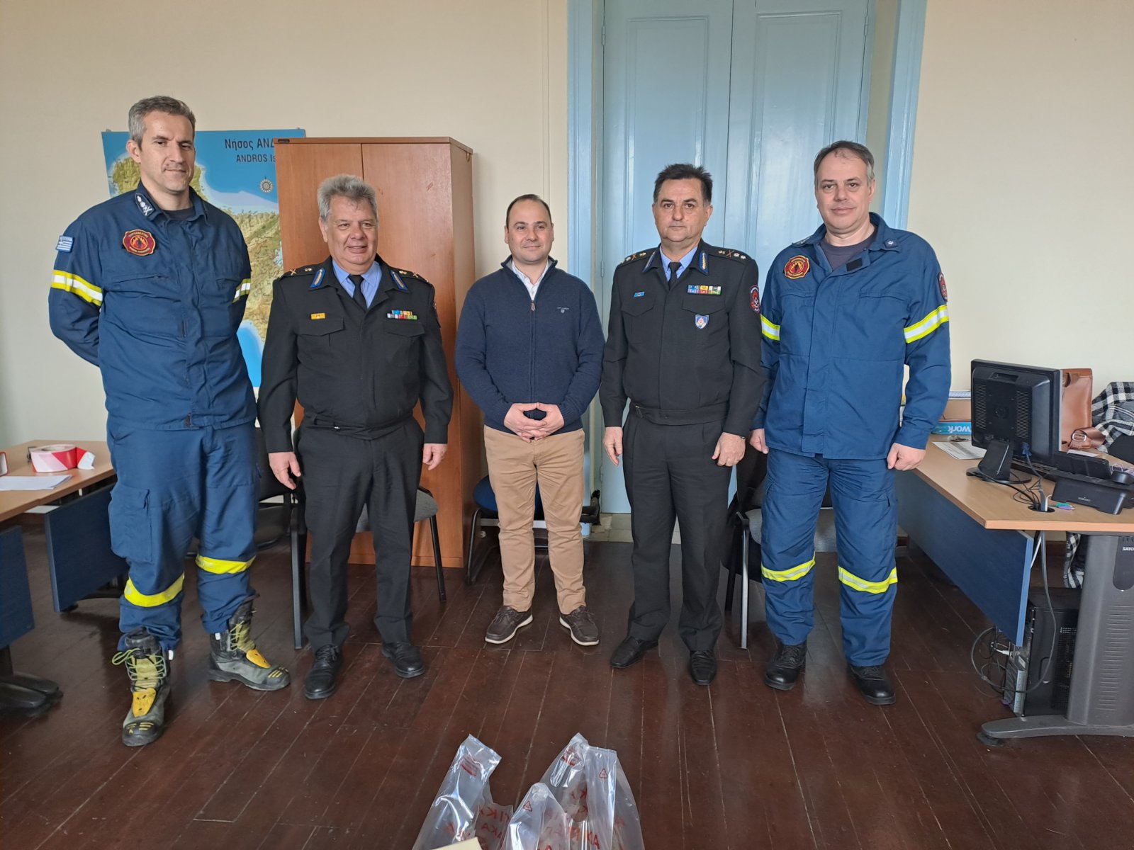 Ο Συντονιστής Επιχειρήσεων Βορείου, Νοτίου Αιγαίου και Κρήτης, Υποστράτηγος Κωνσταντίνος Θεοφιλόπουλος, από την Δευτέρα 06 Μαρτίου 2023 έως την Πέμπτη 09 Μαρτίου 2023, επισκέφτηκε τα νησιά Τήνο – Άνδρο – Μύκονο, μαζί με τον Περιφερειακό Διοικητή Νοτίου Αιγαίου, Αρχιπύραρχο Γεώργιο Βλοντζο. Κατά την διάρκεια της παραμονής του, συναντήθηκε  με  τους Δημάρχους, τους Έπαρχους Άνδρου και Τήνου, εκπροσώπους Σωμάτων Ασφαλείας και λοιπών Φορέων των νησιών, καθώς και με το σύνολο του προσωπικού των Πυροσβεστικών Κλιμακίων.