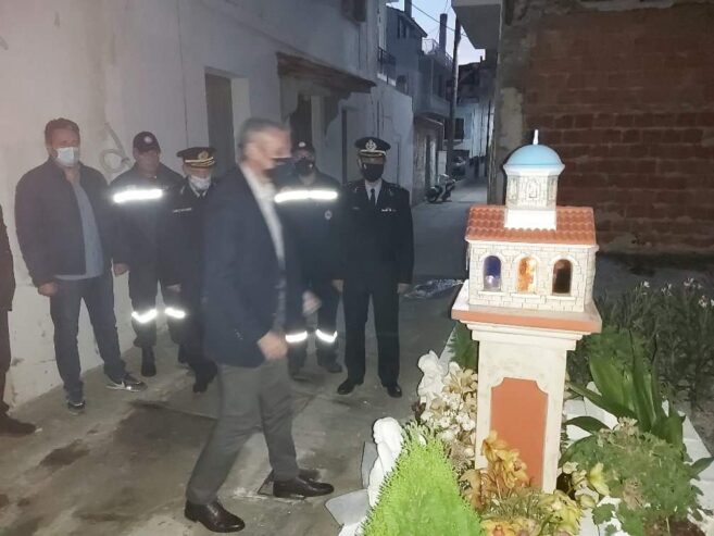 Ο Υφυπουργός επισκέφθηκε το χώρο των εθελοντικών κλιμακίων Σάμου & Βαθέος, την πληγείσα κοινότητα (Άνω) Βαθέος και την πληγείσα από το σεισμό περιοχή της πόλης της Σάμου.