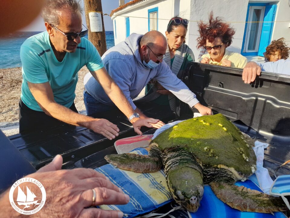 Ειδοποιήθηκε άμεσα η ομάδα ανταπόκρισης εκβρασμών του Ινστιτούτου Αρχιπέλαγος, περισυνέλλεξε την χελώνα και της πρόσφερε τις πρώτες βοήθειες στην ερευνητική βάση της Σάμου. Στη συνέχεια μεταφέρθηκε στο Κέντρο Διάσωσης Θαλάσσιων Χελωνών του ΑΡΧΕΛΩΝ στην Αθήνα όπου της παρέχεται περίθαλψη. Η ασφαλής μεταφορά στον Πειραιά πραγματοποιήθηκε για άλλη μια φορά με τη συνδρομή της Attica Group και της εταιρείας Blue Star Ferries.