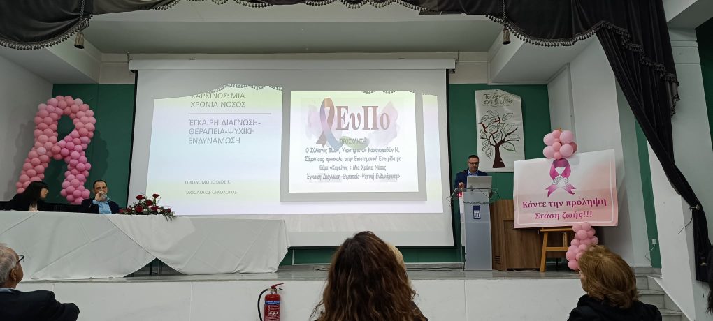 Σε αυτό το πλαίσιο, ο Σύλλογος Φίλων, Υποστηρικτών Καρκινοπαθών Νομού Σάμου «ΕυΠο», διοργάνωσε  επιστημονική εσπερίδα στην αίθουσα πολλαπλών χρήσεων του Δήμου Δυτικής Σάμου , με θέμα “Καρκίνος: Μια Χρόνια Νόσος. Έγκαιρη Διάγνωση-Θεραπεία-Ψυχική Ενδυνάμωση”.