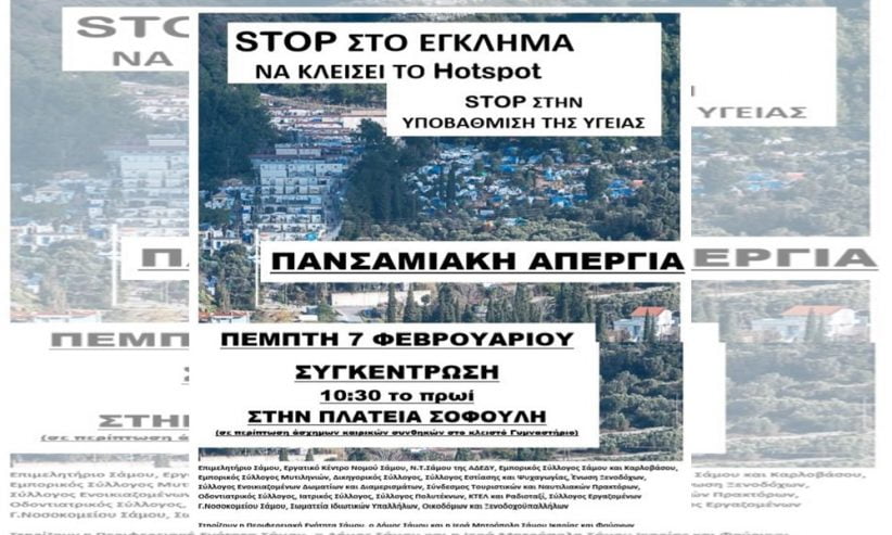 Το πλαίσιο και τα αιτήματα της απεργιακής κινητοποίηση στις 7/2, που έχει την αποδοχή και τη συμφωνία των περισσοτέρων σωματείων, μαζικών συλλόγων και φορέων του νησιού της Σάμου αλλά και των άλλων νησιών του Αιγαίου, δεν αφήνουν κανένα περιθώριο ρατσισμού, εκφράζουν αλληλεγγύη  και απαιτούν λύση για τις άθλιες συνθήκες που ζουν πρόσφυγες και μετανάστες, που ήδη έχουν διωχθεί από τις πατρίδες τους από τον πόλεμο και την φτώχια.