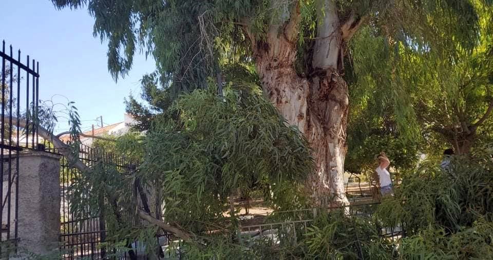 Την περασμένη Πέμπτη στο ίδιο σημείο τεράστιο κλαδί δέντρου αποκόπηκε εξαιτίας των ισχυρών ανεμών που επικρατούσαν στο νησι.