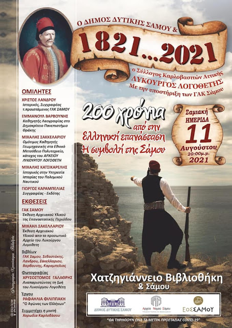 Θα μιλήσουν οι: Χρίστος Λάνδρος, φιλόλογος, τ. προϊστάμενος ΓΑΚ Σάμου, Μανόλης Βαρβούνης, καθηγητής Λαογραφίας στο Δημοκρίτειο Πανεπιστήμιο Θράκης, Μιχάλης Σακελλαρίου, ομότιμος καθηγητής στο Εθνικό Μετσόβιο Πολυτεχνείο, κάτοχος του Αρχείου Λυκούργου Λογοθέτη, Μιχάλης Κατσικαρέλης, ιστορικός στην Υπηρεσία Ιστορίας Πολεμικού Ναυτικού και Γιώργος Καραμπελιάς, συγγραφέας-εκδότης.