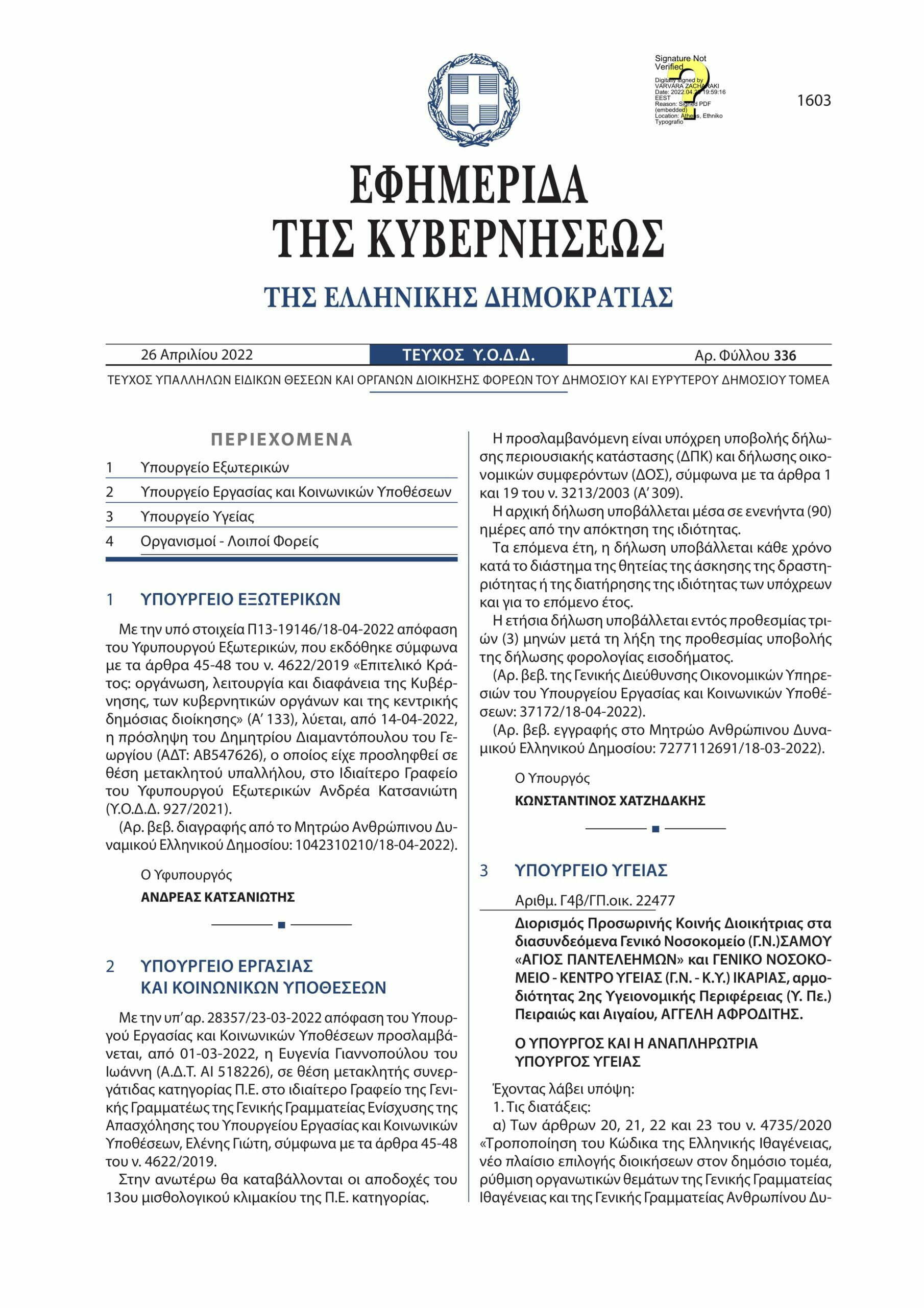 Αναρτήθηκε στο διαδικτυακό τόπο του “Διαύγεια” η απόφαση του Υπουργείο Υγείας με θέμα: