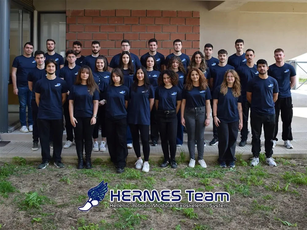 Η HERMES Team ιδρύθηκε το 2018 από φοιτητές του Πανεπιστημίου Θεσσαλίας και του Διεθνούς Πανεπιστημίου Ελλάδος, σε συνεργασία με την ΕΛΕΠΑΠ Θεσσαλονίκης (Ελληνική εταιρεία προστασίας και αποκαταστάσεως αναπήρων προσώπων) και αυτή τη στιγμή απαρτίζεται από 30 φοιτητές.Είναι η πρώτη φοιτητική ομάδα στην Ελλάδα που αναλαμβάνει την κατασκευή ρομποτικού εξωσκελετού για τον διαγωνισμό CYBATHLON.. Η ομάδα περιλαμβάνει, επίσης, τον πιλότο του ρομποτικού εξωσκελετού με τη βοήθεια ορθοπεδικών και νευρολόγων, καθώς και τον υπεύθυνο καθηγητή Νικόλαο Μπέλλα, προσφέροντας διαφορετικές επιστημονικές και επαγγελματικές προσεγγίσεις.