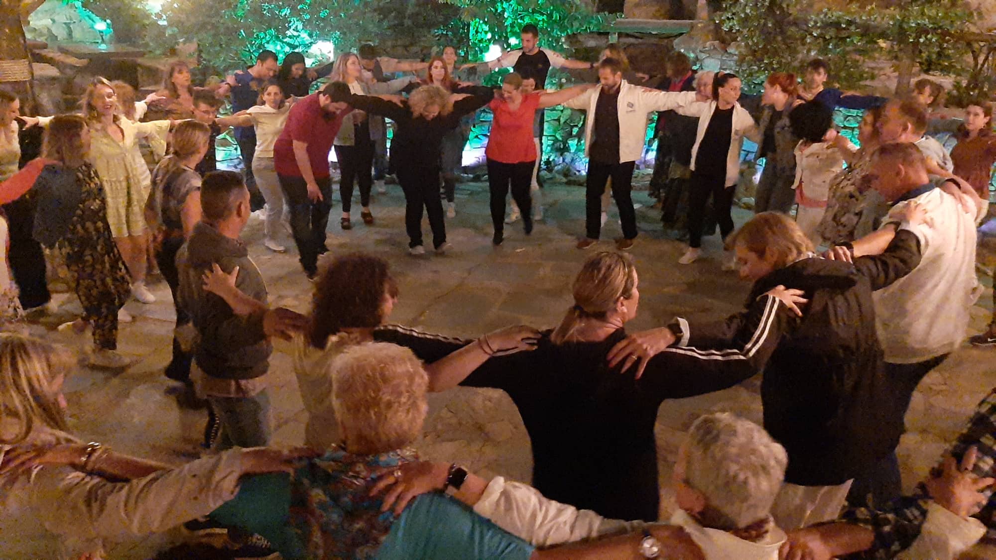 Γεύτηκαν επίσης τις αυθεντικές Ικαριώτικες γεύσεις στην Ταβέρνα ‘Ναϊάδες’ στην παραλία Νας, ενώ είχαν την ευκαιρία να χορέψουν τον αυθεντικό Καριώτικο χορό μαζί με ντόπιους χορευτές.