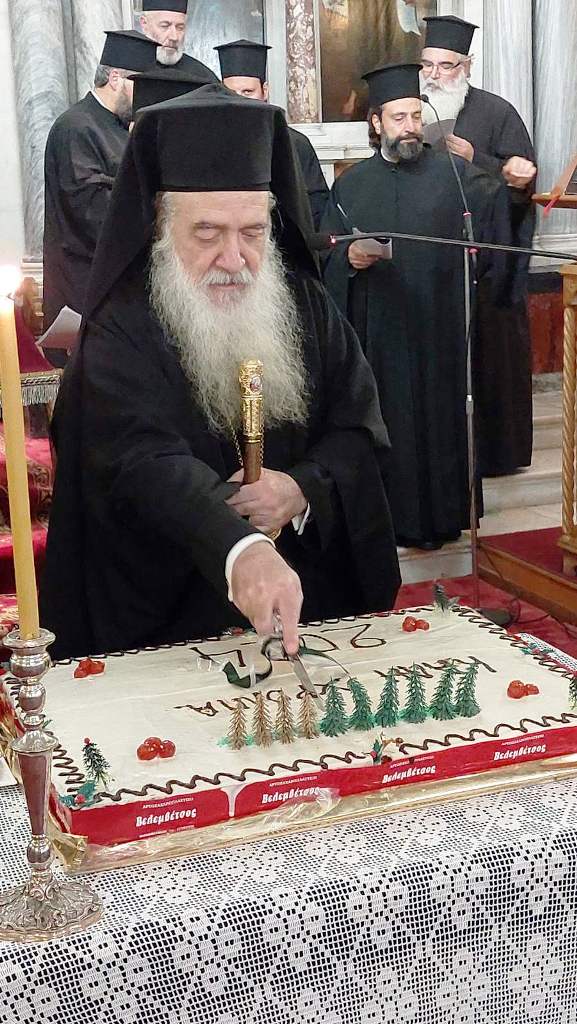 Ο Σεβασμιώτατος Ποιμενάρχης μας ευλόγησε την Αγιοβασιλόπιττα και προέβη σε σύντομο απολογισμό του επιτελεσθέντος πνευματικού, ιεραποστολικού, κοινωνικού, φιλανθρωπικού και πολιτιστικού έργου της Ιεράς Μητροπόλεως για το παρελθόν έτος 2023. Επεσήμανε δε ιδιαιτέρως ότι μετά τρία έτη εκ του φονικού σεισμού 2020 η εκκλησιαστική μας ζωή, οι Θείες Λειτουργίες και οι λοιπές ιερές ακολουθίες στις περισσότερες ενορίες μας τελούνται ακόμη σε αίθουσες και παρεκκλήσια. Κάλεσε όλους τους νεοεκλεγέντας Βουλευτή, Αντιπεριφερειάρχη καί Δημάρχους σέ συνεργασία και ενότητα προς αντιμετώπιση του μεγάλου αυτού προβλήματος.