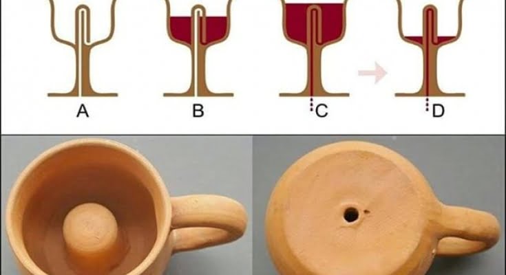 Ωστόσο, αρκεί μία παραπάνω σταγόνα για να ξεπεράσει τα όριο της γραμμής και τότε η κούπα να… αδειάσει, χύνοντας όλο το κρασί από τη βάση της.
