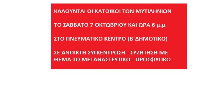 Είχε προηγηθεί ανάρτηση στη σελίδα της Κοινότητας Μυτιληνιών Σάμου που καλούσε τους κάτοικους σε ανοικτή συγκέντρωση το Σάββατο 7 Οκτ. με θεμα το προσφυγικό .