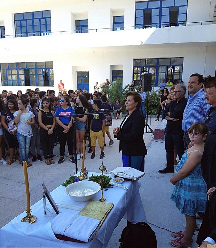 Περιφερειάρχης Βορείου Αιγαίου κα. Χριστιάνα Καλογήρου μαζί με τους Αντιπεριφερειάρχες κ.κ. Νίκο Κατρακάζο και Γιώργο Κυριαζή, παρέστη σήμερα στην τελετή αγιασμού για την έναρξη της νέας σχολικής χρονιάς στο Πρώτο και Δεύτερο Γυμνάσιο και στο Νέο Μουσικό Γυμνάσιο Σάμου. Από το ΕΣΠΑ της Περιφέρειας Βορείου Αιγαίου στο συγκεκριμένο σχολικό συγκρότημα χρηματοδοτείται έργο κτηριακής αναβάθμισης, προϋπολογισμού 1,5 εκατομμυρίων ευρώ. Το έργο προβλέπεται να έχει ολοκληρωθεί εντός του τρέχοντος σχολικού έτους.