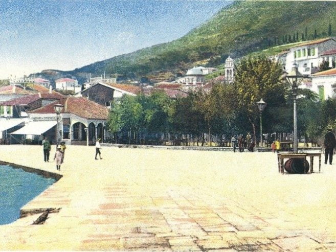 Είναι το πιο πολυσύχναστο σημείο της πόλης και επίκεντρο όλων σχεδόν των πολιτικών και κοινωνικών εκδηλώσεών της. Εδώ σχηματίζουν τις πρώτες εντυπώσεις οι επισκέπτες της πόλης που αποβιβάζονται από τα ατμόπλοια της «Ανατολικής Ατμοπλοΐας Π. Πανταλέοντος», της «Ατμοπλοΐας Αρχιπελάγους» του Χατζηδαούτ Φαρκούχ, της «Σαμιακής Ατμοπλοΐας», της «Πανελλήνιου Ατμοπλοΐας», του Αυστριακού Lloyd κ.ά. Η λήψη της φωτογραφίας έγινε κάποιο ανοιξιάτικο μεσημέρι. Τα καφενεία έχουν παρατάξει τα τραπεζάκια τους στη σκιά των δέντρων του κήπου περιμένοντας τη μεσημεριανή πελατεία. Στο βάθος ο τρούλος και το καμπαναριό του μητροπολιτικού ναού του Αγ. Νικολάου.