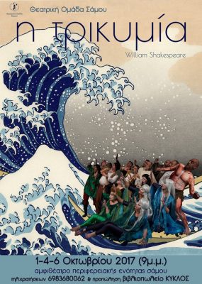 Η Θεατρική Ομάδα Σάμου, παρουσιάζει το θεατρικό έργο του W. Shakespeare “Η Τρικυμία”, στο Αμφιθέατρο της Περιφερειακής Ενότητας Σάμου, στις 1,4 και 6 Οκτωβρίου 2017 για τρεις ΜΟΝΟ παραστάσεις.Ώρα έναρξης παραστάσεων 9 μ.μ.Τηλέφωνο κρατήσεων: 6983680062 .Προπώληση εισιτηρίων: βιβλιοπωλείο ΚΥΚΛΟΣ