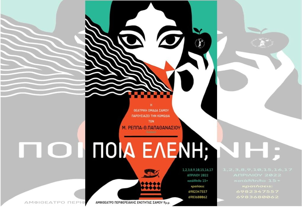 Η Θεατρική Ομάδα Σάμου μετά από δύο χρόνια απουσίας λόγω της πανδημία και ανταποκρινόμενη στην ανάγκη του κόσμου για γέλιο και διασκέδαση, παρουσιάζει την κωμωδία των Μ. Ρέππα-Θ. Παπαθανασίου «ΠΟΙΑ ΕΛΕΝΗ;»