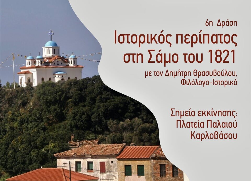 Το θέμα είναι το 1821 και η Σάμος και πλοηγός στην Ιστορία θα είναι ο Δημήτρης Θρασυβούλου, φιλόλογος – ιστορικός, ο οποίος είχε συνοδεύσει ανάλογες βόλτες και στο παρελθόν.