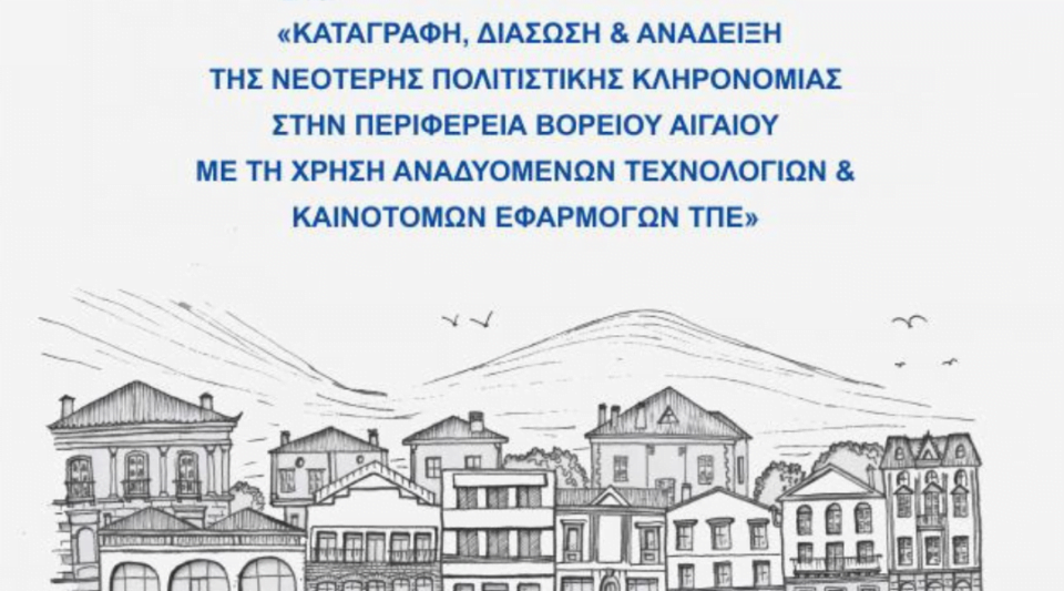Το έργο «Καταγραφή, Διάσωση και Ανάδειξη της Νεότερης Πολιτιστικής Κληρονομιάς στην Περιφέρεια Βορείου Αιγαίου, με τη χρήση αναδυόμενων τεχνολογιών και καινοτόμων εφαρμογών ΤΠΕ», υλοποιεί η Υπηρεσία Νεωτέρων Μνημείων και Τεχνικών Έργων Βορείου Αιγαίου (ΥΝΜΤΕΒΑ), σε συνεργασία με τη Διεύθυνση Νεότερης Πολιτιστικής Κληρονομιάς (ΔΙΝΕΠΟΚ) -του Υπουργείου Πολιτισμού & Αθλητισμού.