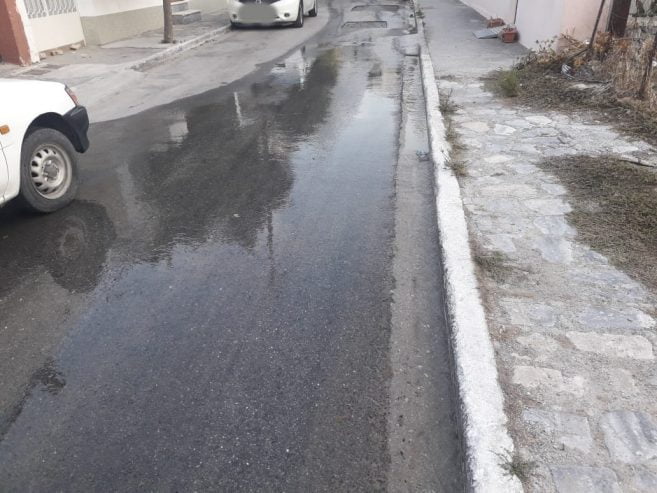 Εδώ και αρκετές μέρες τρέχει το νερό στο δρόμο, στην οδό Κωνσταντινουπόλεως, που οδηγεί στο διοικητήριο της Αντιπεριφέρειας Σάμου, εξαιτίας βλάβης στο δίκτυο ύδρευσης.