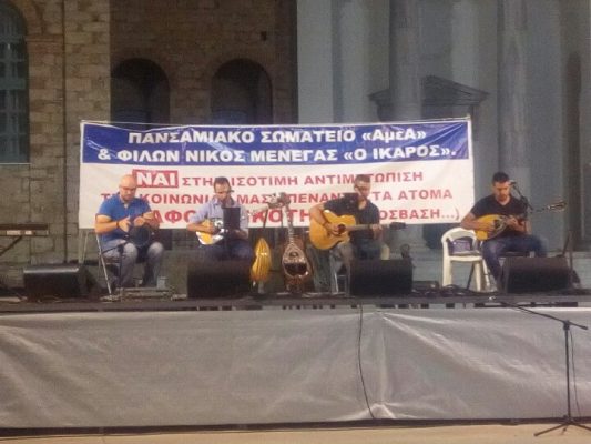 Με χαμόγελα, μουσική, σπιτικά εδέσματα και πρωταγωνιστές τα άτομα με αναπηρία πραγματοποιήθηκε στον αυλειο χώρο της Πορφυριάδας η εκδήλωση που διοργάνωσε το Πανασαμιακό Σωματείο Ατόμων με Αναπηρία Νίκος Μένεγας- ο Ίκαρος.