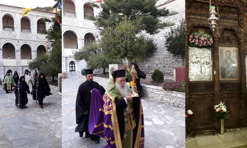 Την παραμονή τελέσθηκε πανηγυρικός εσπερινός στην Ιερά Μονή Τιμίου Σταυρού, χοροστατούντος του Σεβασμιωτάτου ποιμενάρχου μας κ.κ Ευσεβίου.