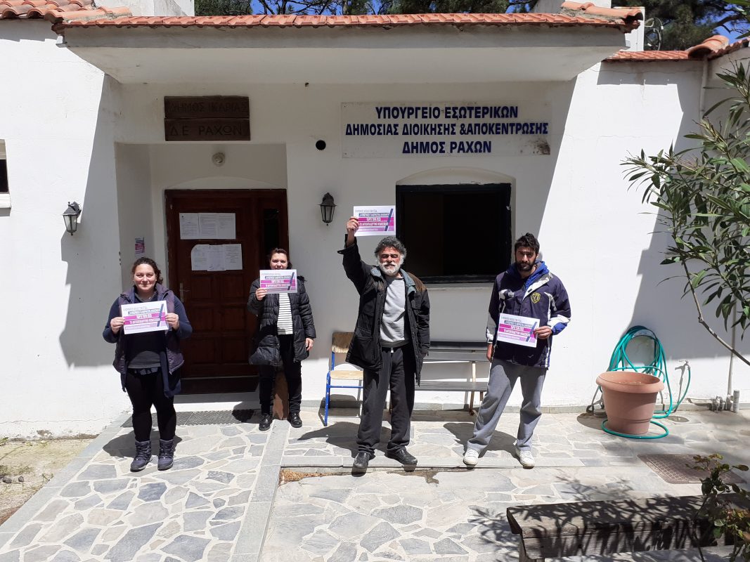 Κινητοποίηση – Παράσταση Διαμαρτυρίας ενάντια στο Πολυνομοσχέδιο που ετοιμάζει να περάσει το Υπουργείο Παιδείας μέσα σε διακοπές Πάσχα και καθολικής καραντίνας εξαιτίας του COVID19 πραγματοποιήθηκε στο κτίριο του Δημοτικού Διαμερίσματος Ραχών Ικαρίας.