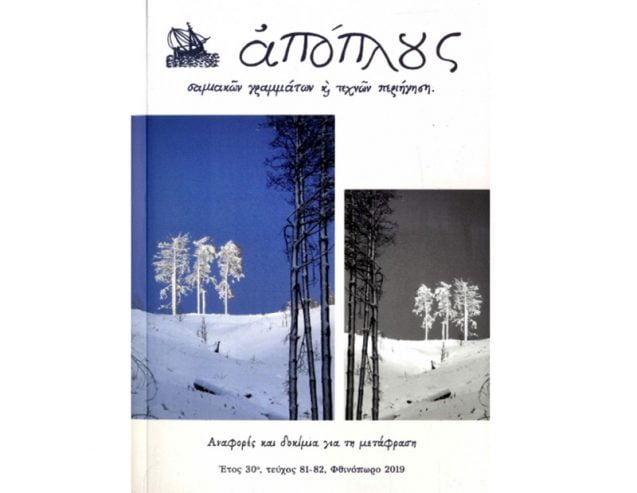 Με πλούσια ύλη κυκλοφόρησε ο νέος απόπλους.  Το διπλό τεύχος του, 81-82, είναι αφιερωμένο στη μετάφραση. Περιλαμβάνει κυρίως δοκίμια για το πολύ σημαντικό αυτό θέμα, της μετάφρασης, ενώ προαναγγέλλει ότι θα ακολουθήσει και άλλο τεύχος με μεταφρασμένη λογοτεχνία, ποίηση και πεζογραφία. Τα δοκίμια απαντούν σε μια πληθώρα ερωτημάτων σχετικά με τη μετάφραση, ξεκινώντας από τις δυσκολίες, τις δυνατότητες, τη σχέση πρωτότυπου και μεταφρασμένου κειμένου, την έννοια της δημιουργίας, τη χρησιμότητα και την αναγκαιότητα της μετάφρασης και πλήθος άλλα, πολλά από τα οποία ούτε καν περνούν από το μυαλό του αναγνώστη. Πρόκειται για μια πολύ δημιουργική και συνάμα αγωνιώδη προσπάθεια προσέγγισης του ζητήματος. Τα δοκίμια αφορούν τη μετάφραση από ξένες γλώσσες στα ελληνικά ή και το αντίστροφο, αλλά και από τα αρχαία ελληνικά στη νέα ελληνική γλώσσα. Δημοσιεύονται επίσης και μεταφράσεις δοκιμίων για τη μετάφραση, όπως για παράδειγμα του Μονταίνι ή της Τσαμπερλέιν. Της τελευταίας μάλιστα το δοκίμιο συνδέει τις μεταφορικές απεικονίσεις της μετάφρασης με το φύλο.